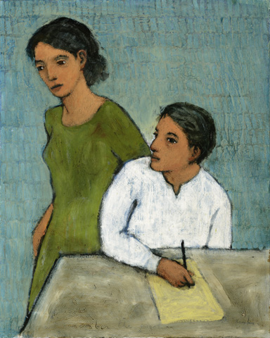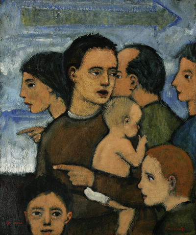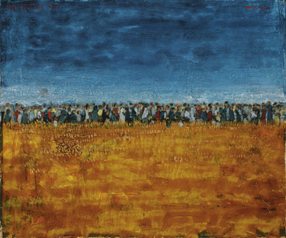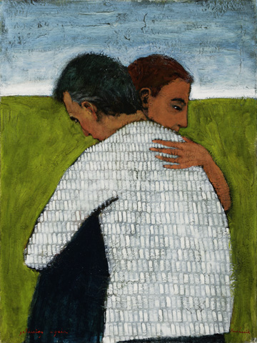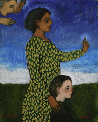 Brian Kershisnik is the youngest of a happy and widely traveled family of sons. His father’s work as a petroleum geologist took them to various continents across the globe where his mother unfailingly set up a home filled with music, great food and active conversation, furnished with treasures and artifacts from their travels and hosting frequent parties and exotic slide shows of their globetrotting family life.