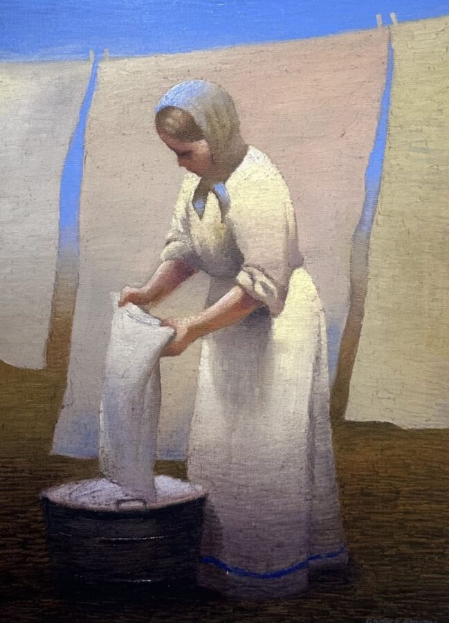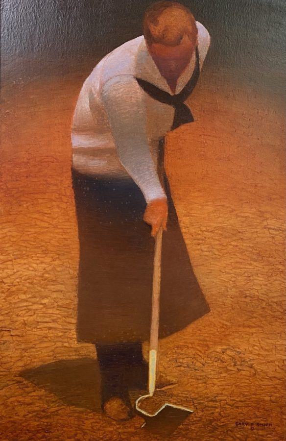 Although his studies and experiments were extensive, Gary Ernest Smith is most often labeled a regionalist drawing comparisons to such artists as Thomas Hart Benton and Grant Wood. The work of Gary Ernest Smith reflects the artist, expressive but humble, and is grounded in the rural and religious. The social commentary is a sturdy hymn of the beauty of hard work, a lament for a way of life that is at risk of fading away, and the beauty that exists in everyday scenes—not just the extraordinary.