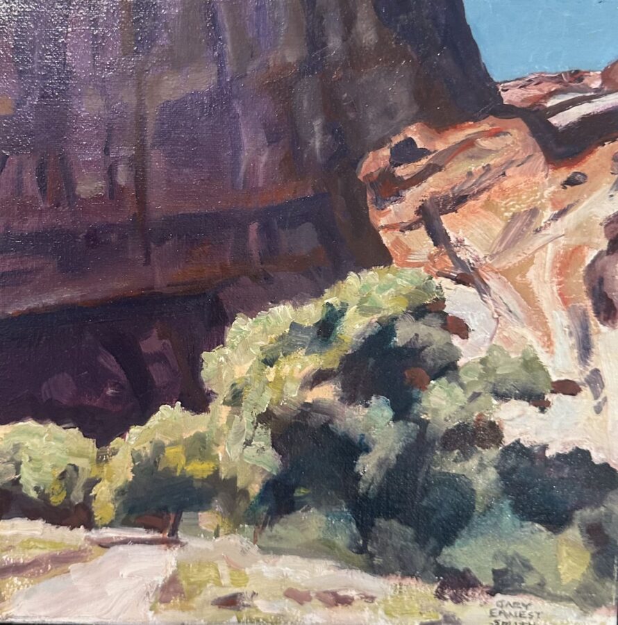 Gary Ernest Smith was born in the rural farm community of Baker City, Oregon in 1942. He exhibited an interest in art at an early age. His parents recognized his talent and encouraged his ability through his youthful years. He was selling his landscapes and portraits while in junior high and high school. After graduating from high school and attending a workshop at his great aunt’s gallery in Lincoln Beach, Oregon, he determined to get a college degree and teach art. Gary met and married musician, Judy Asay in 1967. He completed a bachelor’s degree and was pursuing a master’s degree when he was drafted into the Vietnam War. After military service he pursued his master’s degree in painting at Brigham Young University where he taught part time and served as gallery director at the Harris Fine Arts Center. The friends he knew in college had all moved on by that time and after graduating he decided to pursue a career in painting rather than teach. It was very hard in the beginning and through ten years of commissions and perseverance his hard work payed off.