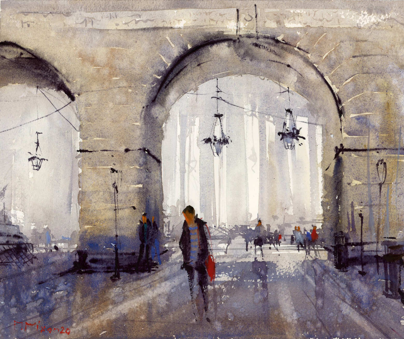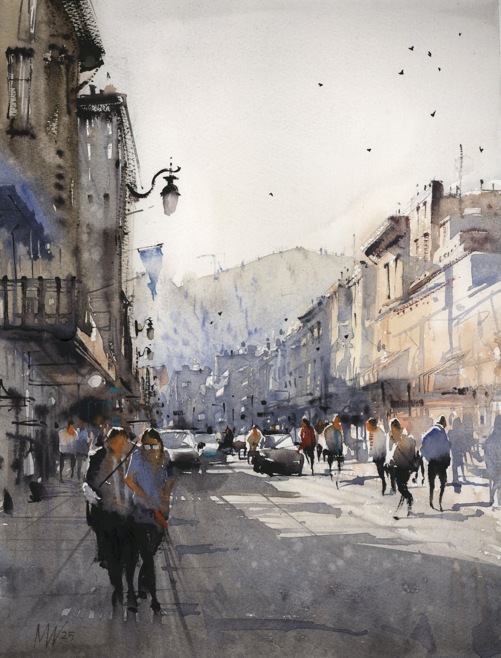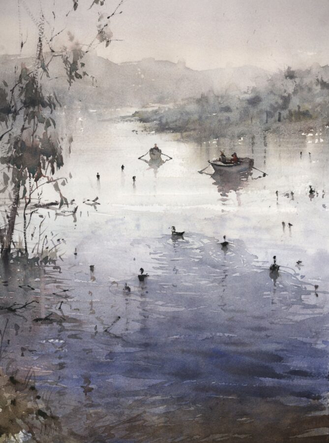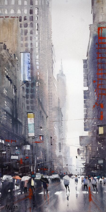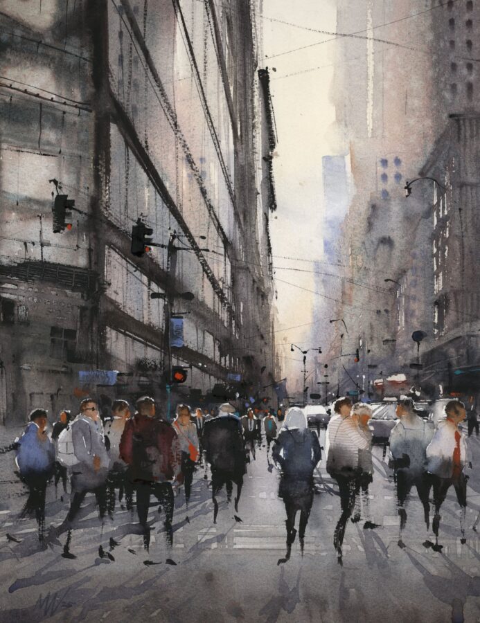 The nature of watercolor is to be free; it dries fast. Once you put down a mark you cannot paint over it like you can with acrylic or oil. Each touch of the brush is a deliberate mark colored by the artist’s perception and attitude of the subject. Watercolor requires you to be confident with yourself and correspondingly with your strokes. You have to enjoy the way the pigment settles; if you do try to rework anything, it only looks encumbered. Watercolor is honest.