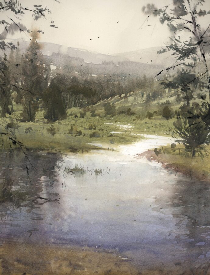 We’ve all seen something beautiful, like a sunset or the view from a mountaintop, and wanted to share our experience. So many times a photograph falls short of the experience that we had. Watercolor lends itself well, not to expressing realistic detail, but to capturing the feeling—the impression—of the experience. In some ways it becomes an even more realistic representation, because it hits closer to the impression that we felt.