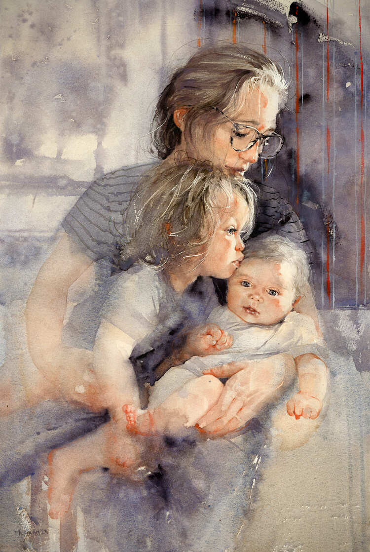 I feel like my lifestyle enhances the way I paint. Art is more than just paint on paper; it is what comes as a result of living. Everyone has their own art. Loving my children, accidentally burning the chicken, taking out the trash, smelling the air—all of the separate parts work together and become what I or anyone else creates. The fact that we are all living our lives and creating, in any small way we can, connects us to humanity. I would rather be connected than disconnected.